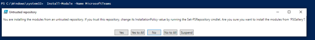 Install-Module -Name MicrosoftTeams