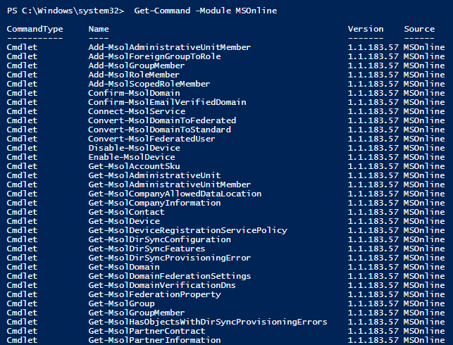 Get-Command -Module MSOnline