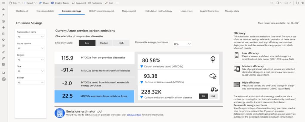 A microsoft disponibilizou a pouco uma calculadora de impacto de emissões onde é possivel acompanhar o que as organizações tem feito e qual o impacto desse forço na emissão de carbono no meio ambiente.