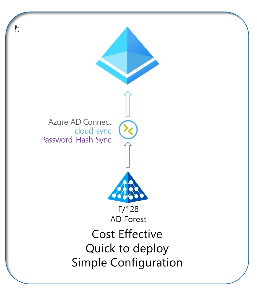 Implementação do Azure AD Cloud Sync com Hash Sync para novas florestas ou ainda para a floresta inicial, rapidamente os usuários podem iniciar a colaboração e utilizar os recursos que eles tem disponiveis no ambiente.