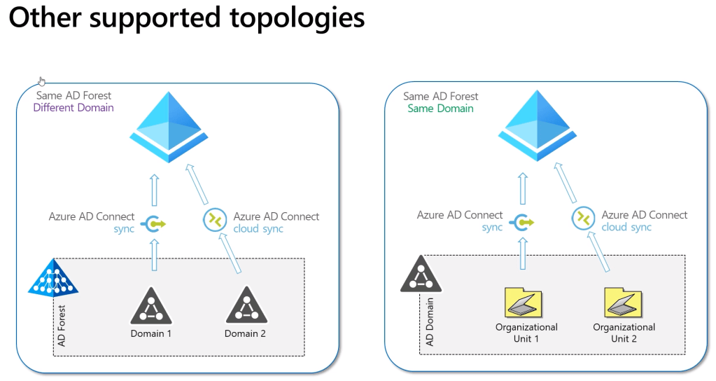 O processo de sincronismo é realizado com um agente de provisionamento de nuvem do azure AD, esse agente substitui o Azure AD Connect local, mas, se você quiser e o escopo da organização assim permitir é possível utilizar os dois, AD Connect local e o seu homologo na nuvem.