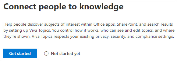 - Na página Conectar pessoas ao conhecimento , clique em Começar para orientá-lo no processo de configuração.
