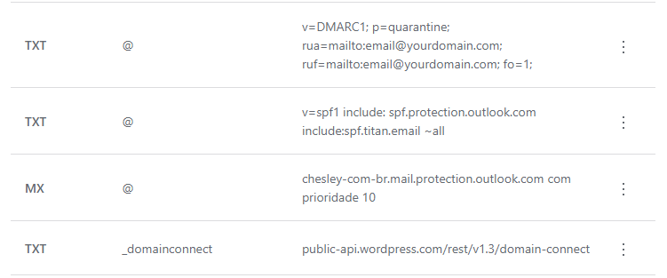Em nosso exemplo, o valor SPF é v=spf1 include:spf.protection.outlook.com include:spf.titan.email ~all