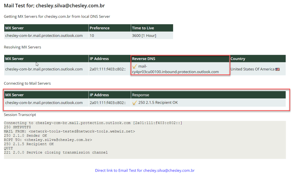 - Verificar o status de entrada do Exchange Online IPv6 – Teste de E-mail