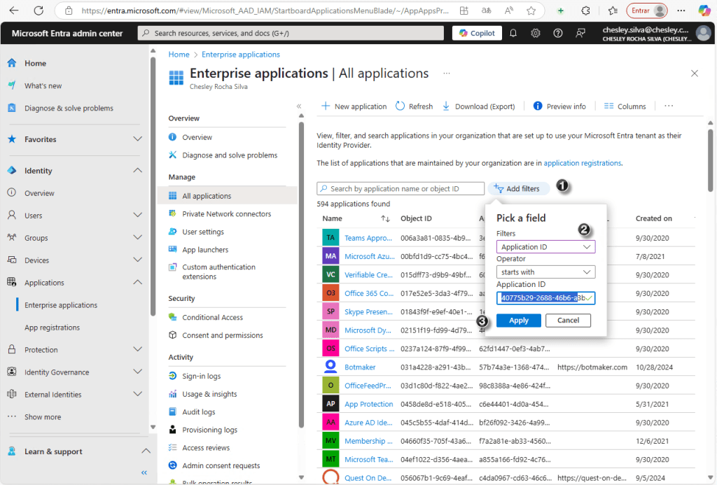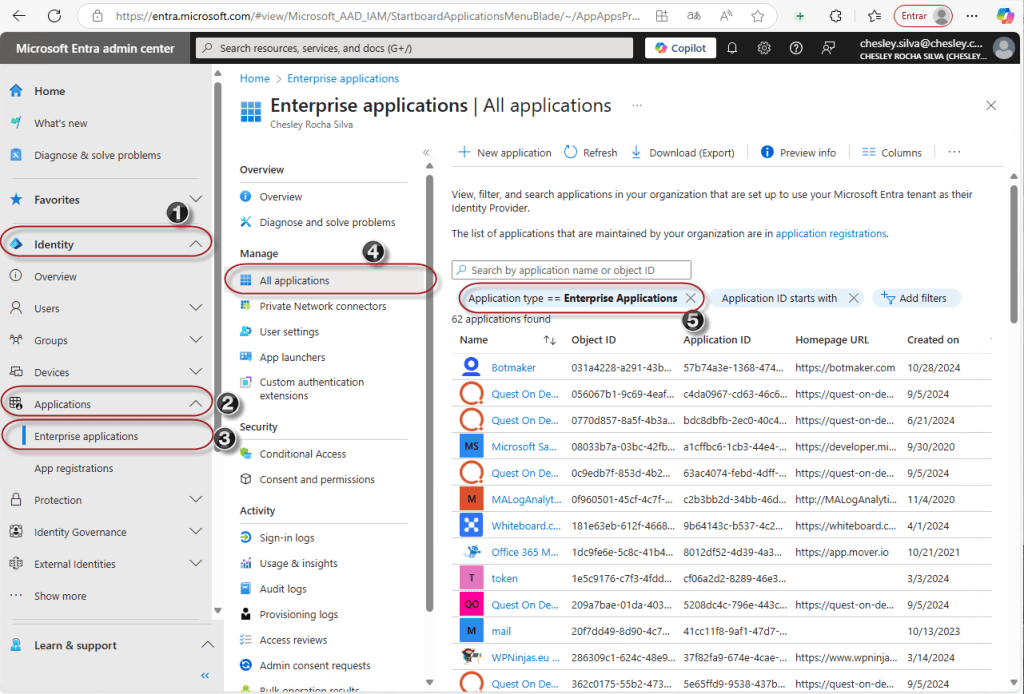 - Navegue até Aplicativos de > de identidade > Aplicativos corporativos