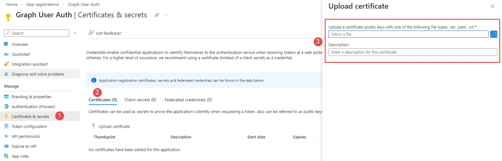 - Vá até a aba Certificados e selecione Carregar certificado.