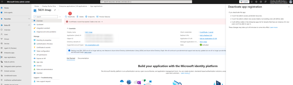 - Desative aplicativo no Microsoft Entra ID com PowerShell